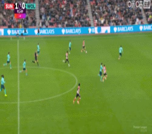 第90+3分钟,克雷伊奇解围变乌龙,桑德兰2-0狼队