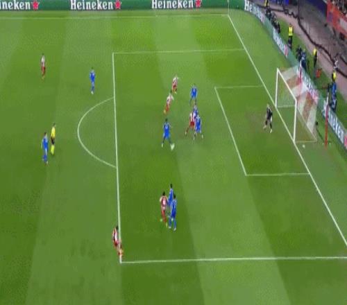 第52分钟,埃泽右路45°传中,塔雷米抢点头槌破门,奥林匹亚科斯扳回一城,2-3!